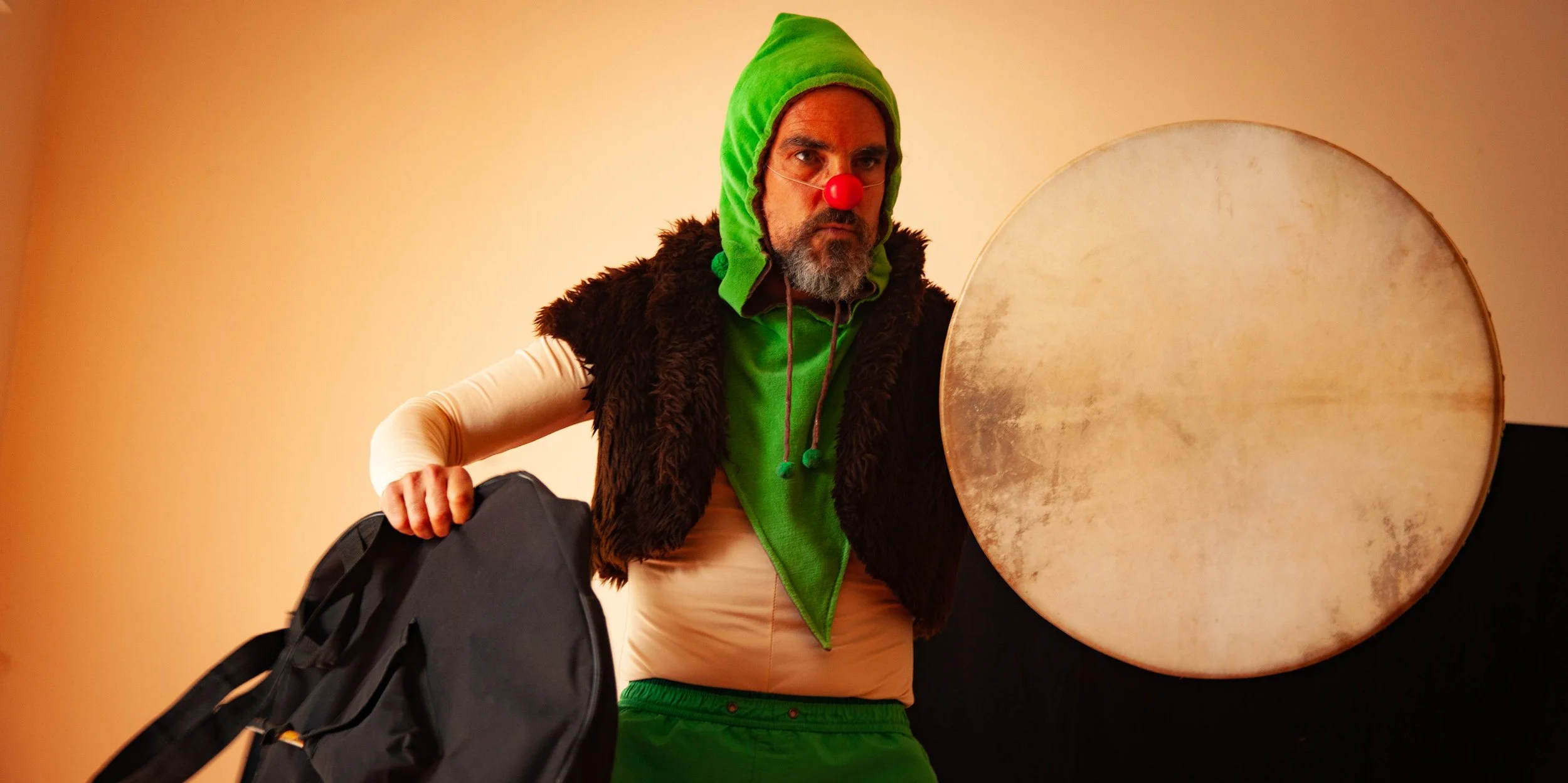 I have been practising theatrical clowning since 2019 with Gozde Atalay. Clowning is a way of theatrical improvisation with a long history. It is about switching off the mind and letting the body take over. The red nose is the smallest mask in the world.